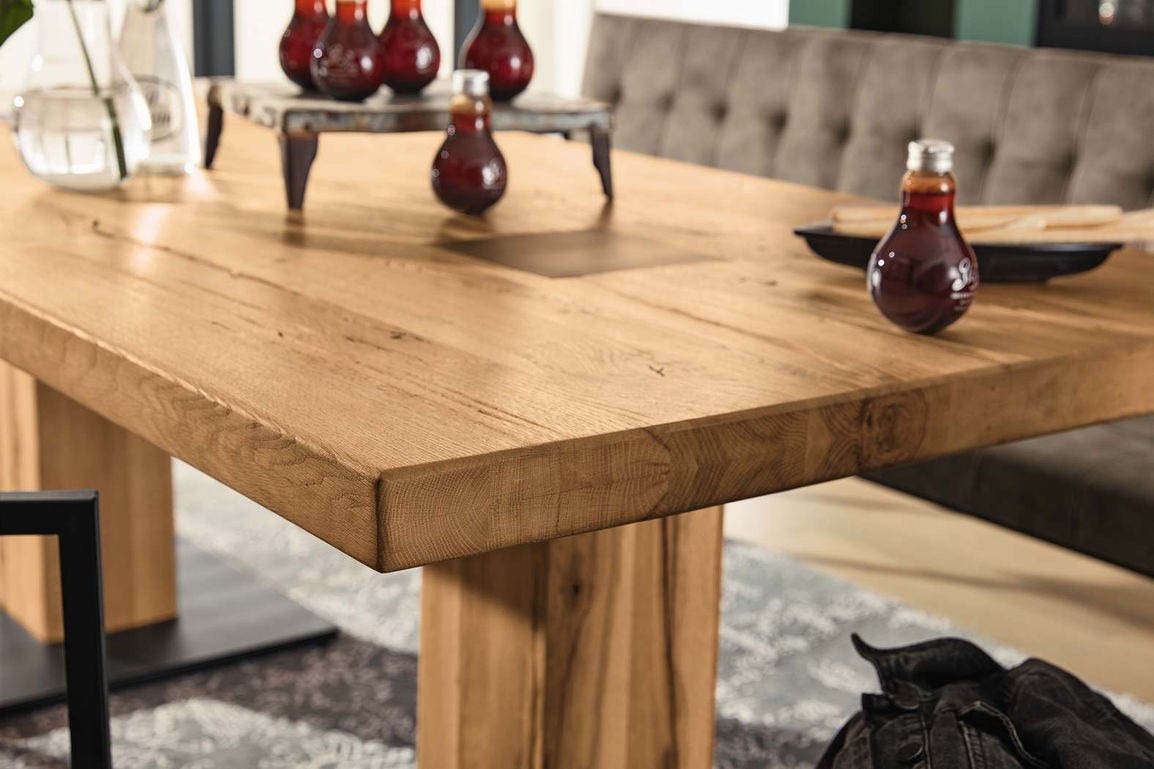 Всегда актуальный немецкий дизайн и качество. Фундаментальные обеденные столы из массива дуба и подходящие к ним стулья. Внушительный внешний вид и натуральные материалы.